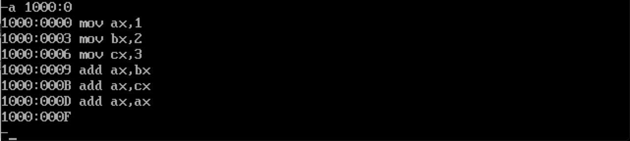 用 a 命令以汇编的形式向内存中写入指令