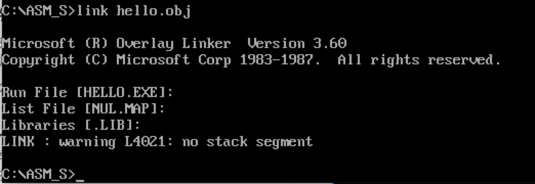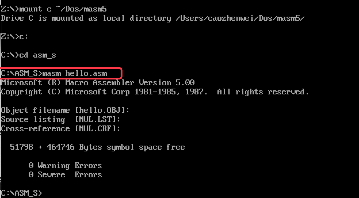 mount c ~/Dos/masm5 因为我的 masm5 文件夹在这里: ~/Dos/masm5