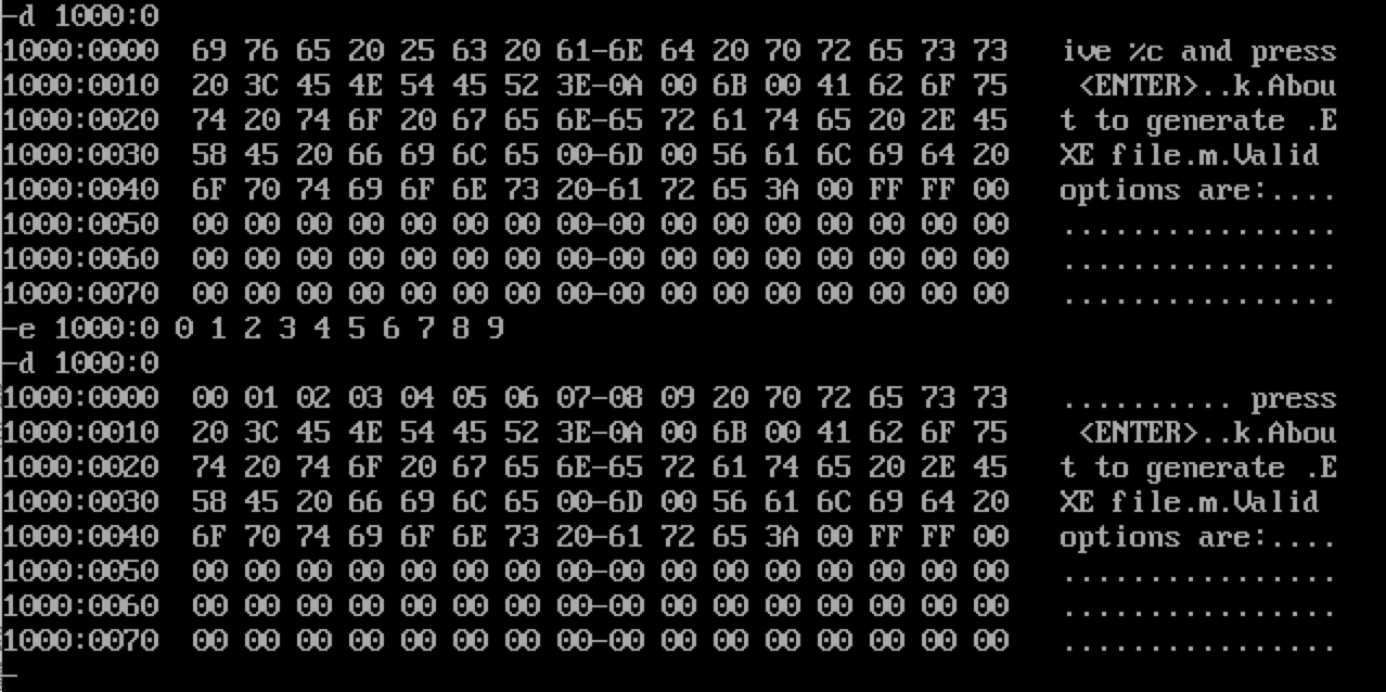 e 命令来修改内存中的内容,如下所示